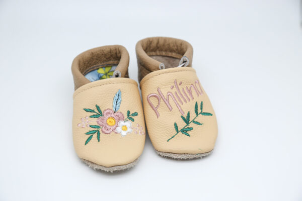 • handgemachte Lederpuschen, jedes Paar ein Unikat